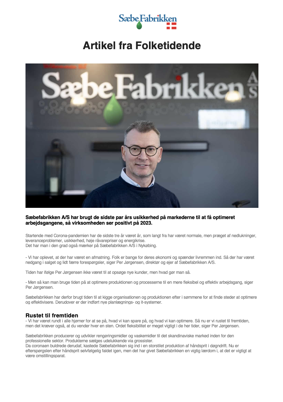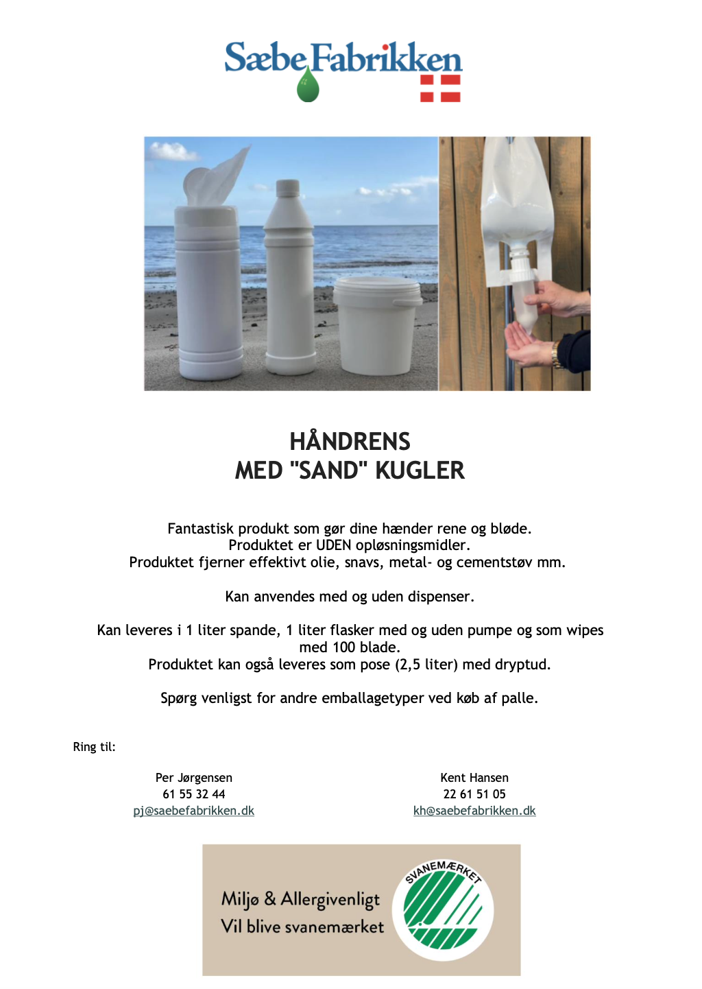Med mere end 70 års erfaring har Sæbefabrikken A/S været en af de førende producenter med løsninger indenfor:
